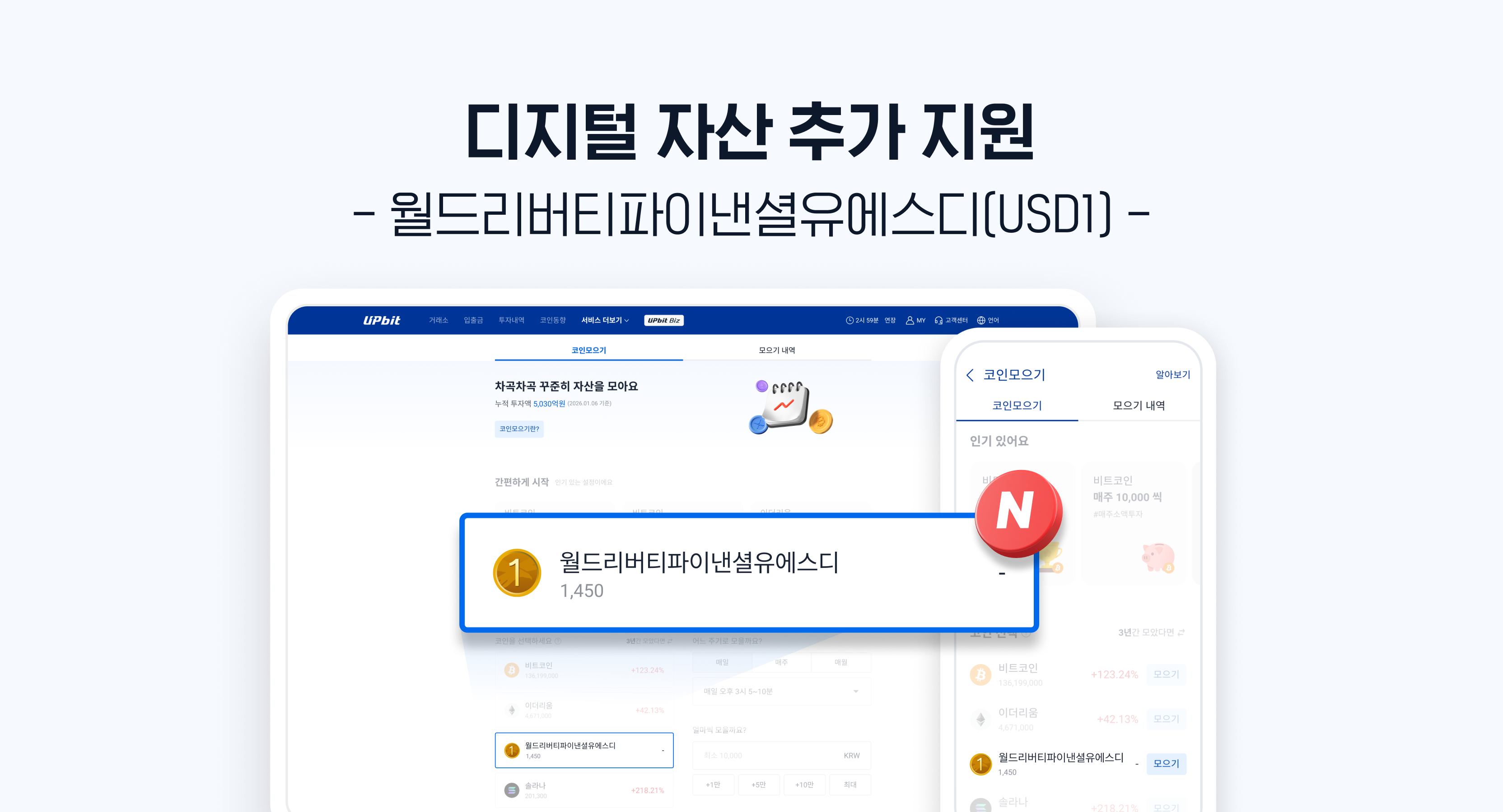 코인모으기에 신규 디지털 자산 월드리버티파이낸셜유에스디(USD1)가 추가되어 안내드립니다.